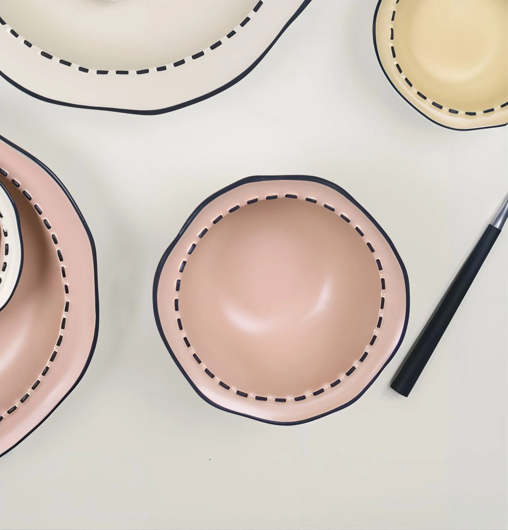 This ceramic bowl stands out with its 2D cartoon-style black stitch detailing and gently flared rim. The matte cream glaze brings warmth to your table while the unique outline pops like a sketch come to life—fun and eye-catching without feeling overdone.