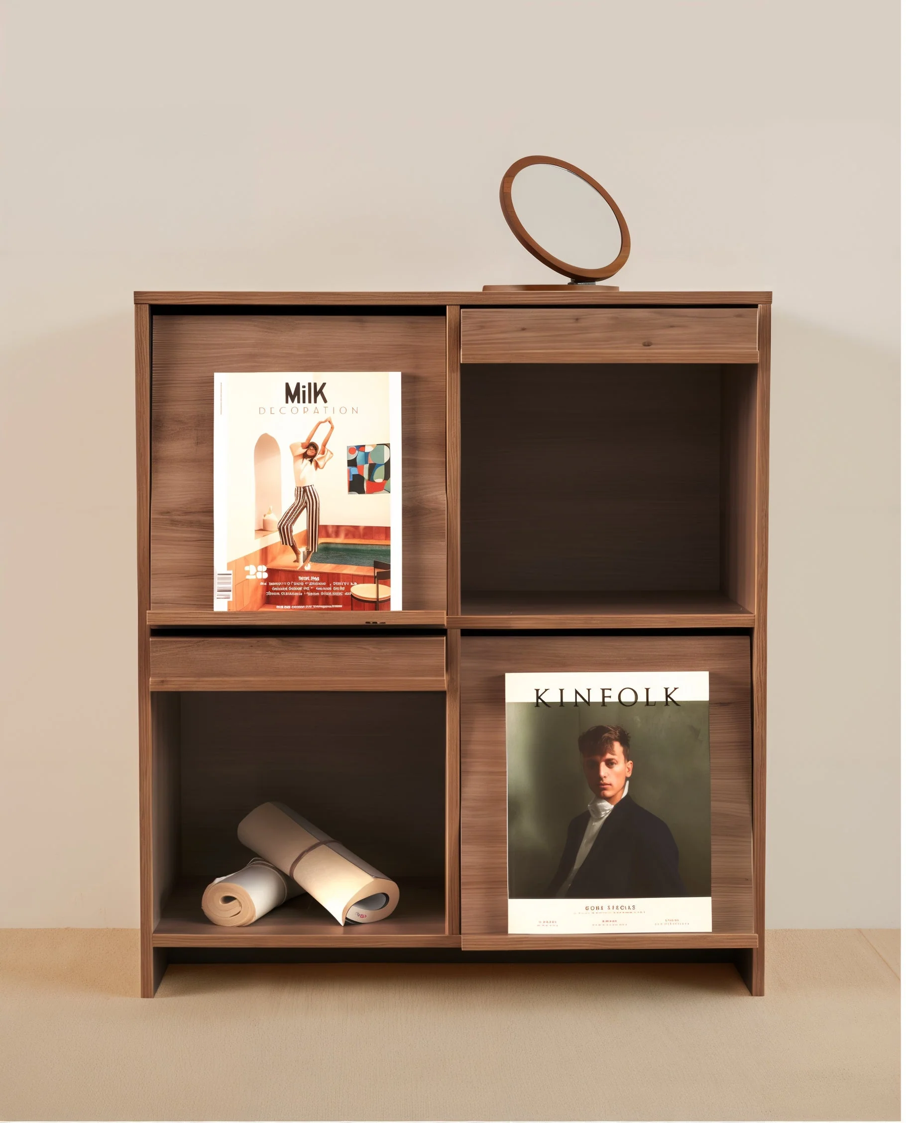 A sleek, wall-leaning cabinet that neatly tucks away magazines, files, and small items in four easy-slide cubbies. With softly angled doors and natural wood tones, it turns simple storage into part of your home’s design story. Each detail—down to its clean lines and smooth matte finish—reflects thoughtful Korean craftsmanship built to last.