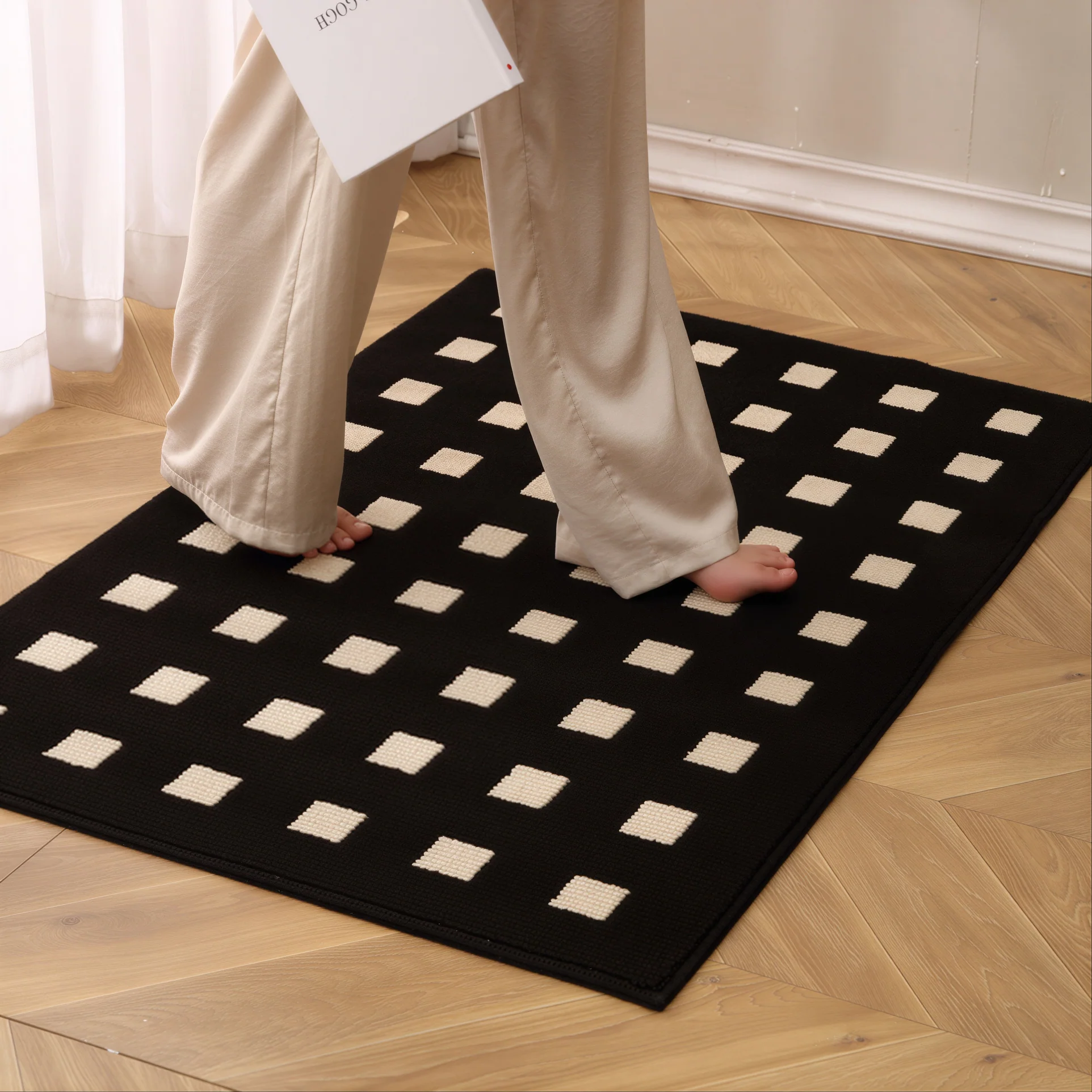 The Checkerboard Mood Mat is graphic enough to notice yet neutral enough to live with every day. Designed with a clean square-grid pattern, it brings a modern, balanced look to your space while staying comfortable underfoot. The tightly woven loop-pile construction creates a firm, supportive feel and helps reduce shedding and dust. Finished in a classic black-and-ivory palette, it blends naturally into living rooms, bedrooms, and entryways for easy, year-round styling.