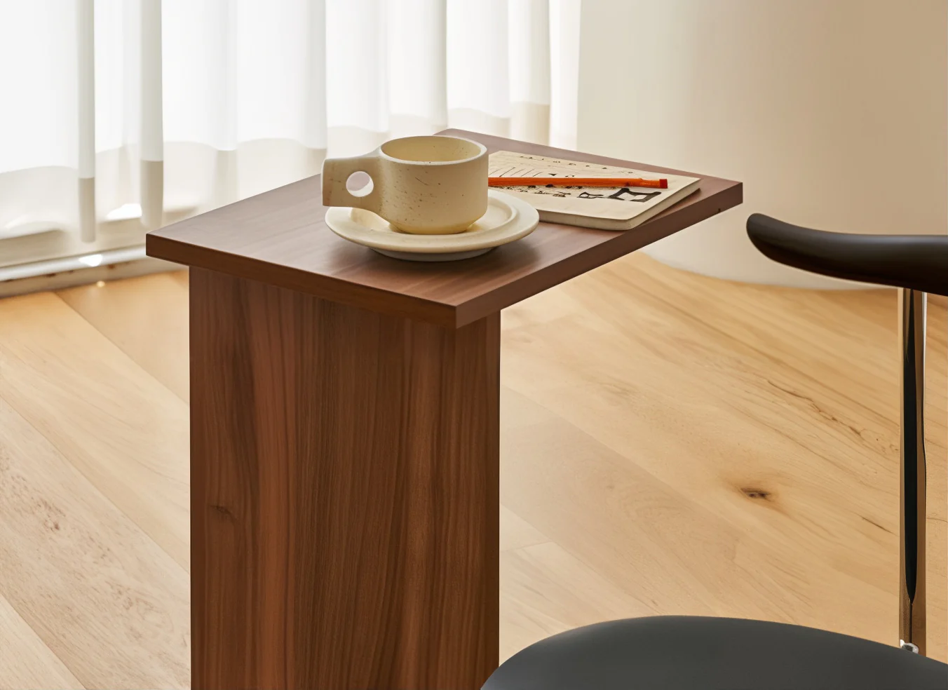 Carefully designed after studying the most commonly used side and low tables on the market, it offers an ideal height and size that feels natural next to sofas, beds, and chairs. Flip it, move it, or slide it in close—it always fits right in.