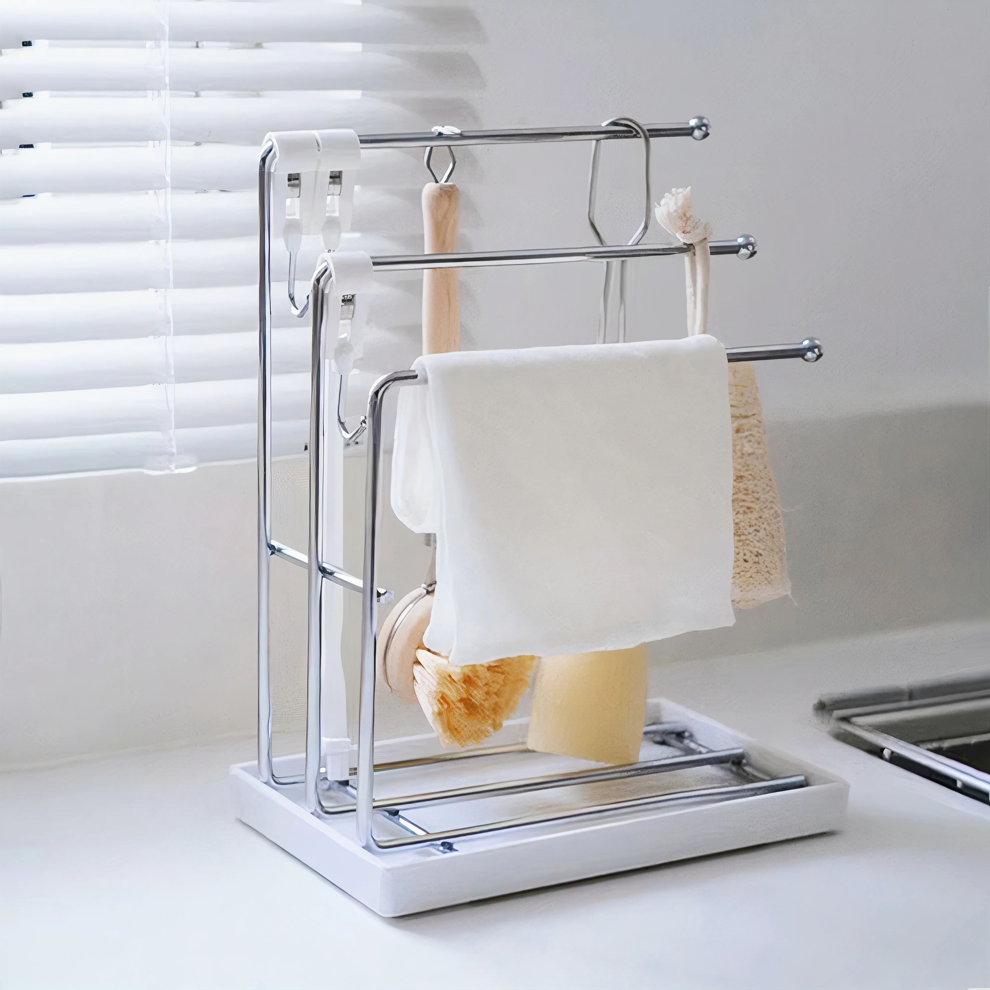 Ideal for keeping dishcloths, hand towels, and sponges dry and organized in kitchens where counter space matters.