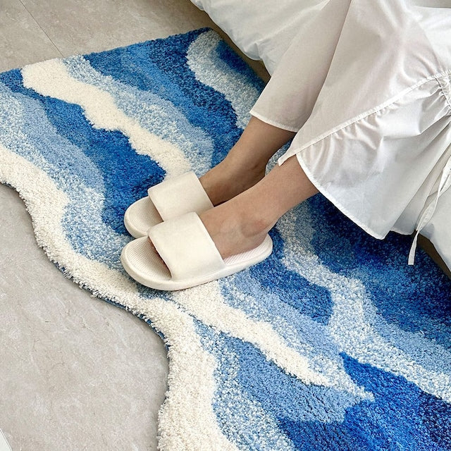 Coastal calm underfoot. Inspired by gentle waves and seaside breezes, this wavy tufted rug brings fresh, fluid lines and gradient blues into your home. Its thick, plush surface adds cozy texture, while the non-slip backing keeps it steady on hard floors. A functional piece that also lifts the mood of the room.